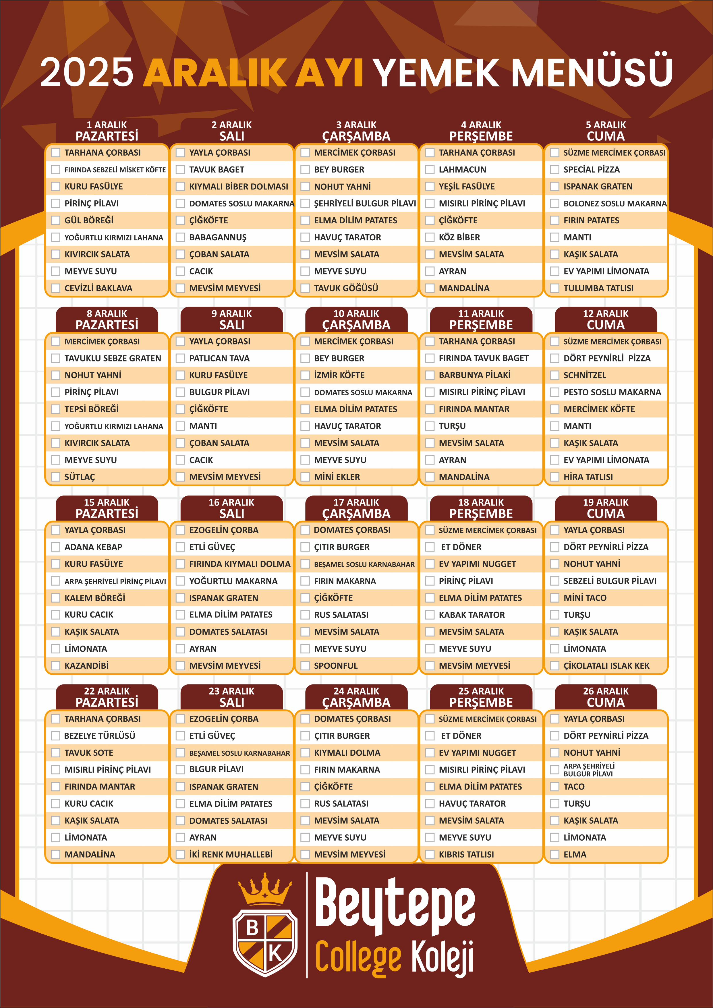 2025 Kasım Ayı Yemek Menüsü