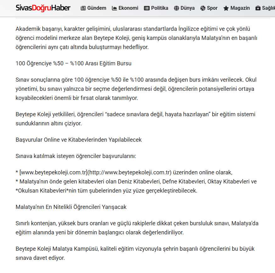 Malatya’da eğitim kalitesiyle öne çıkan Beytepe Koleji Malatya Kampüsü, 10-11 Ocak 2026 tarihlerinde şehir genelinde Ücretsiz ve Ödüllü Okula Kabul – Bursluluk Sınavı düzenleyeceğini duyurdu.